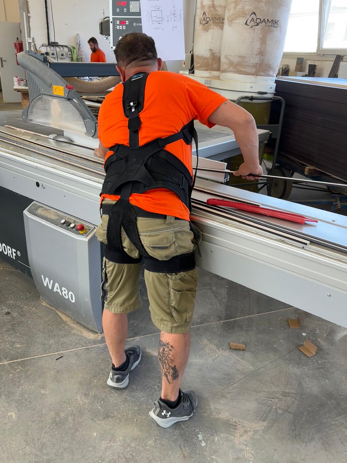 Elastické pásy přenášejí sílu z dolní poloviny těla na horní, což usnadňuje zvedání a práci v předklonu. Bederní pás stabilizuje záda i při dlouhodobém stání nebo podřepu. Díky lehkému, prodyšnému a nenápadnému designu umožňuje volný pohyb i v těsných prostorech.